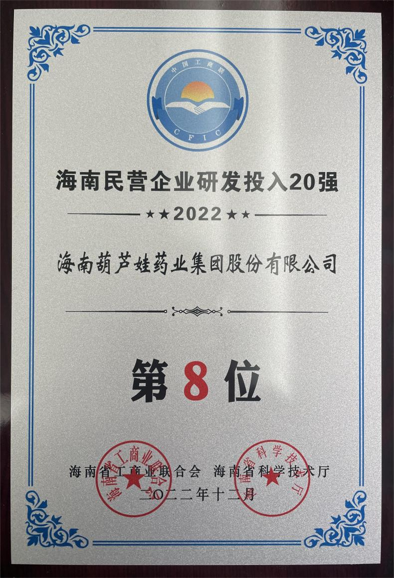 12月23日,2022海南民营企业50强和研发投入20强发布会在海口举行。会上发布了“2022海南民营企业50强”“2022海南民营企业研发投入20强”榜单和分析报告。伟德国际1949药业再次荣登两榜,在海南民营企业50强榜单中位列第25位,较去年上升8位,这也是公司连续三年登榜;在海南民营企业研发投入20强中位列第8位,较去年上升7位。
